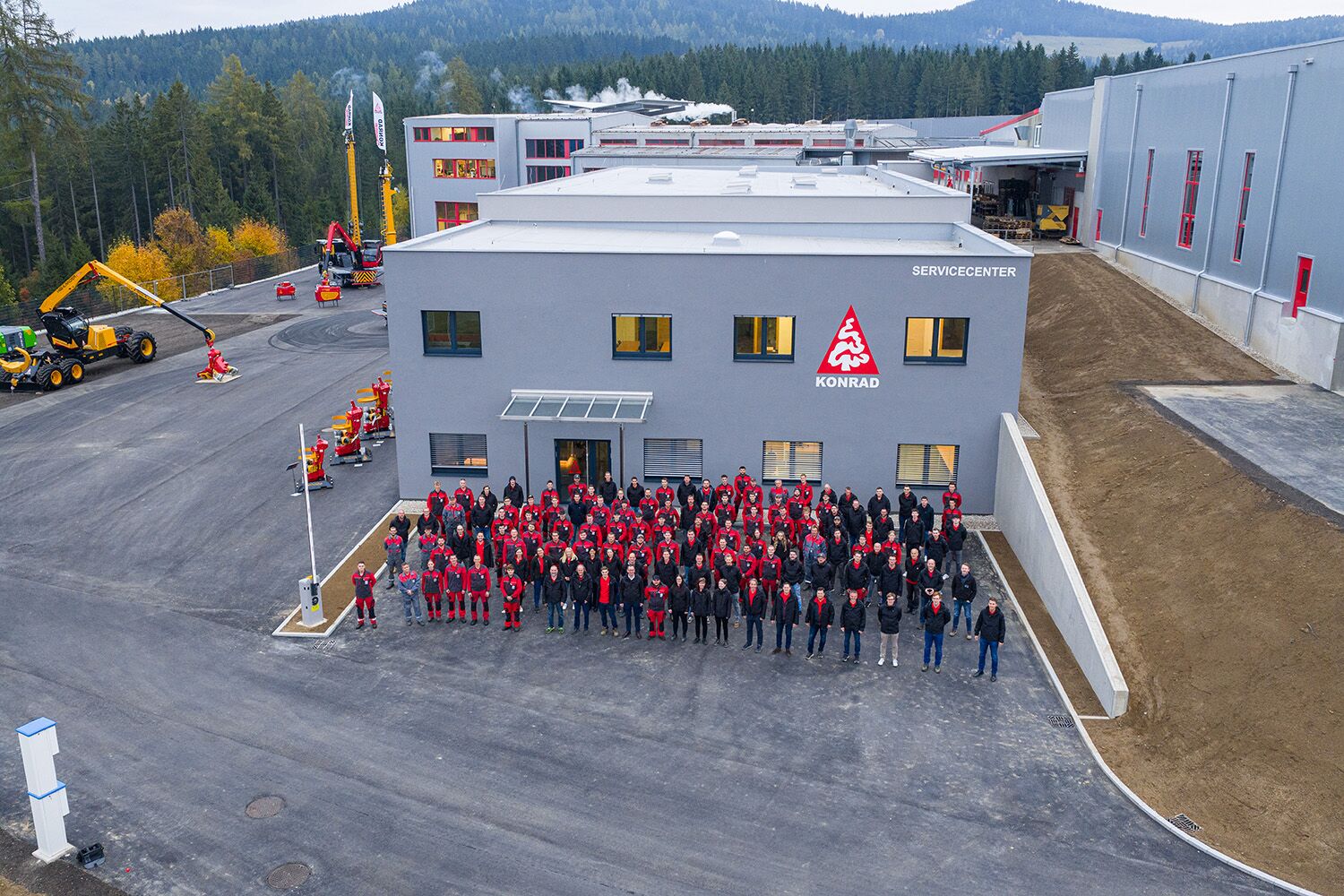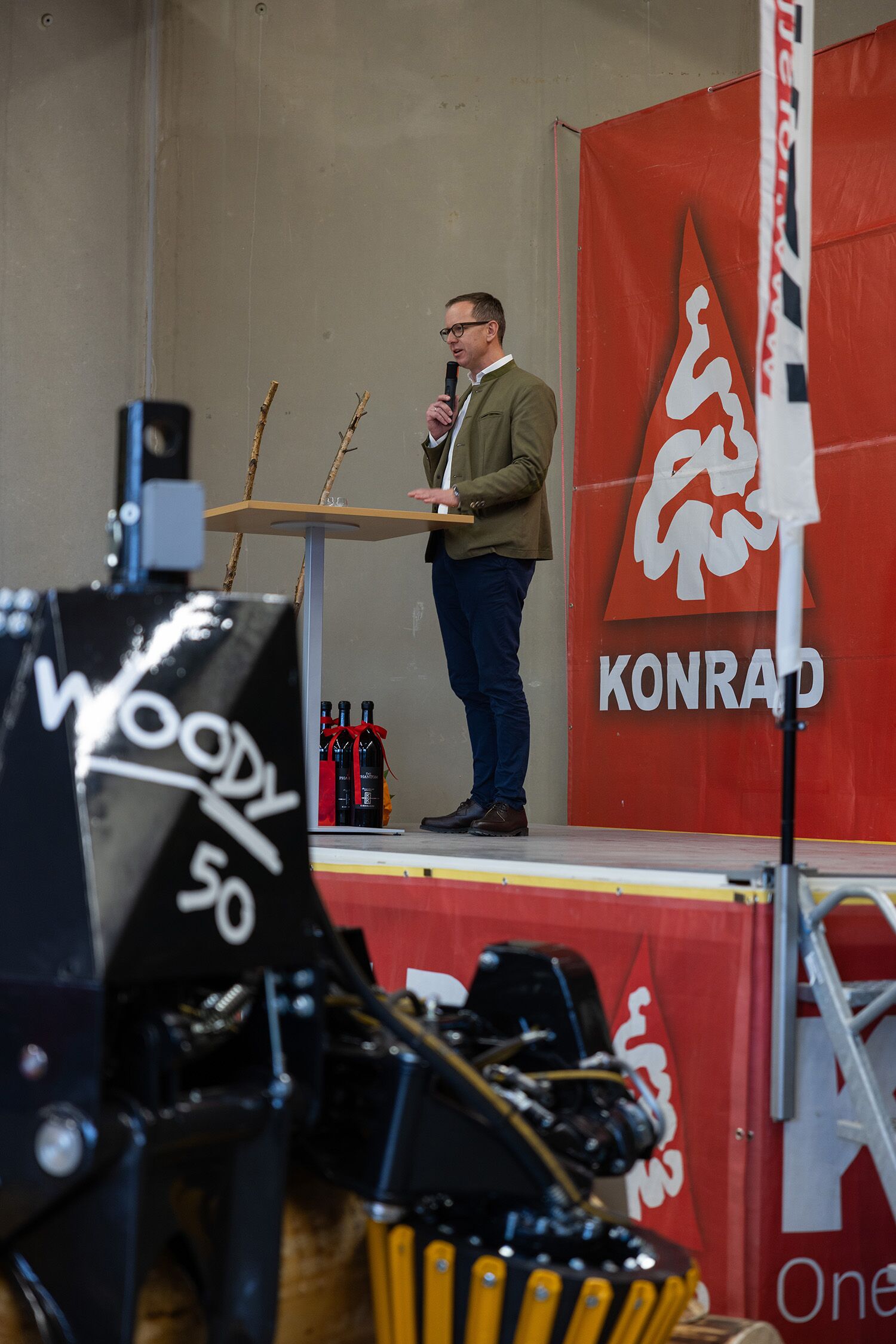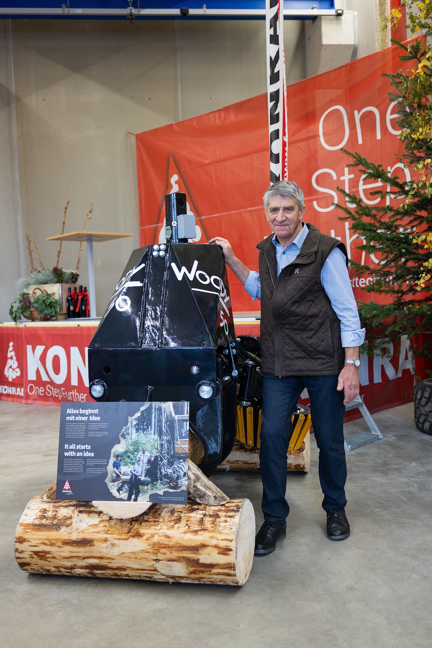 Ein besonderes Highlight: der erste WOODY 50. Dieses historische Modell wurde von uns zurückgekauft, restauriert und am Kundentag erstmals als geschichtliches Ausstellungsstück präsentiert – ein Stück KONRAD-Geschichte, das eindrucksvoll zeigt, wie weit sich unsere Technik weiterentwickelt hat.