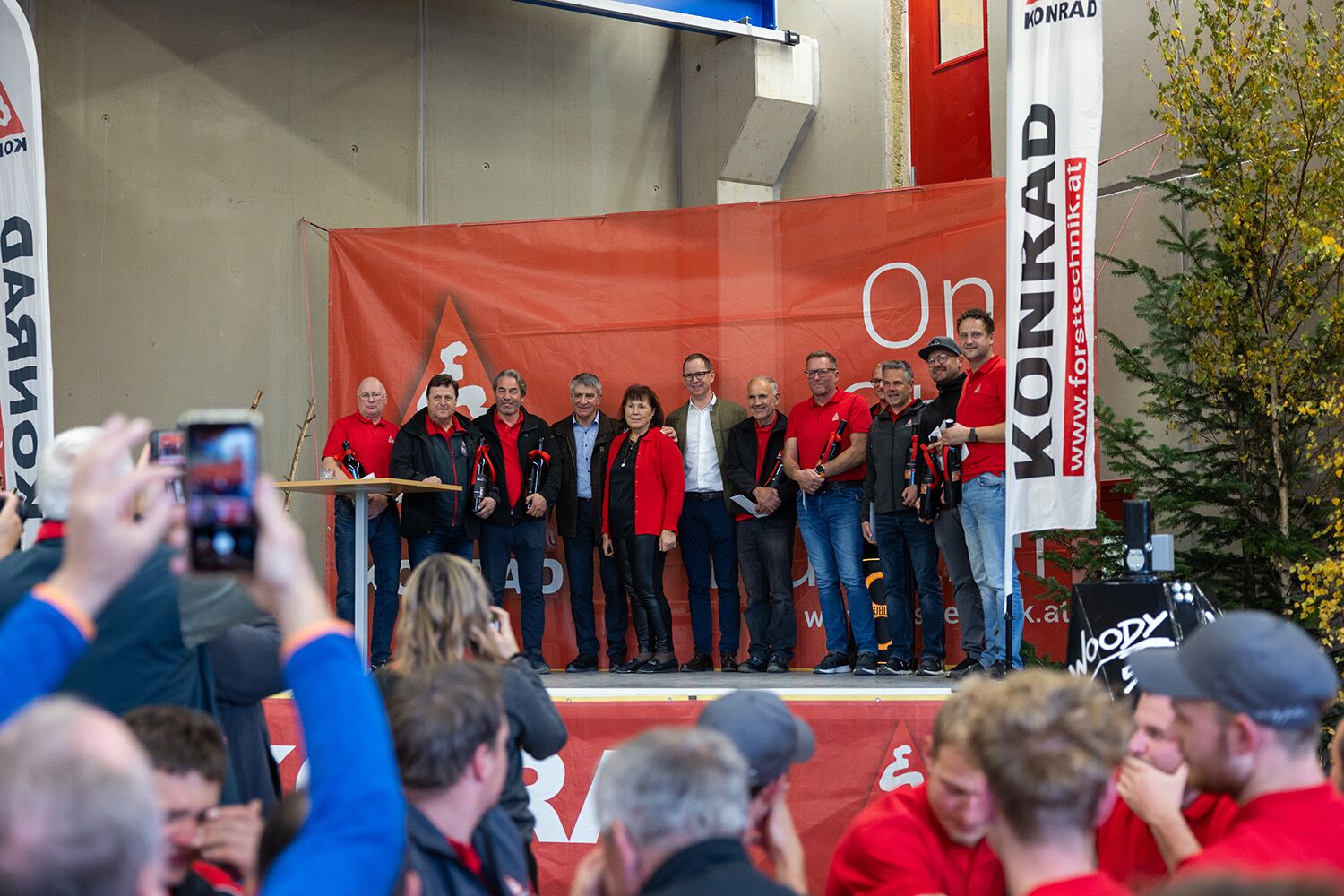 Zum offiziellen Teil der Veranstaltung richtete Markus Konrad einige Worte an das Publikum und gab spannende Einblicke in die Entstehung und Bedeutung des neuen Servicecenters. Mit viel Applaus wurden langjährige Mitarbeiter, überraschend auf die Bühne geholt und für ihren außergewöhnlichen Einsatz geehrt.
